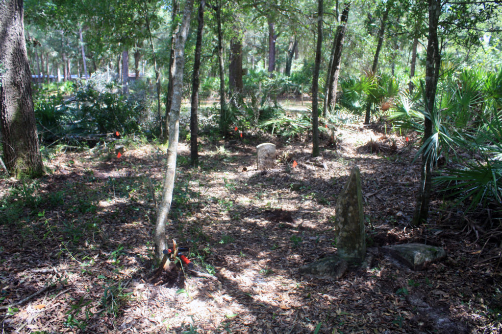 Our fieldwork was made more difficult due to unusually high amounts of rain across Florida in 2018. We arrived onsite to find a significant portion of it flooded. The waters had largely receded over the following two days, allowing us to complete our shovel testing work. The purpose of these shovel test pits (STPs) was to locate the remains of an African American church located next to the cemetery, as well as any other potential features.